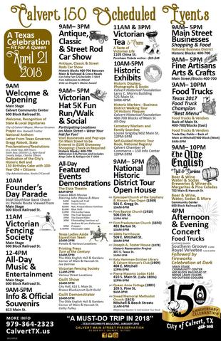 Show your Calvert 150th pride at the Founder's Day Parade by decorating a float. Prizes to be awarded.
